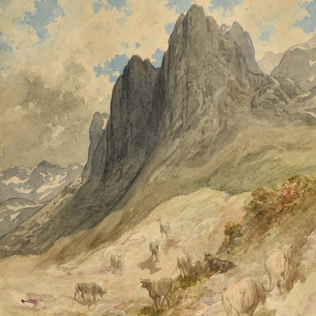 Our work is associated with Scotland in that, for example, it can be compared to the watercolor of a Mountainous Landscape with Stags, 1873, conserved in the Petit Palais. The artist executed numerous views of Scotland when he returned to France, such as the Scottish Landscape in the Museum of Fine Arts in Caen which is dated 1881. In view of its large format, our watercolor was thus realized in the studio as was the habit of this man endowed with incredible visual memory. The view is related to a watercolor sold on May 12th, 1937, which leads to the belief that Doré could have made several variations from the same initial sketch.