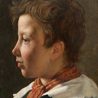 In all probability, our sketch is either the picture presented at the Salon or at least a preparatory work. Not only does it perfectly accord with the description in the Livret, but this volition to “return the arts to their true principles” advocated by Lebrun is clearly visible. The work obviously belonged to an artist who had escaped rigorous academic schooling but was sensitive to the Neoclassical trend and the art of masters such as Greuze, Jean-Joseph Taillasson (1745-1809) and more particularly, Guillaume Guillon-Lethière (1760-1832). Nonetheless, the broad rapid brushstroke and the skillfully distributed lighting indicates a real professional.