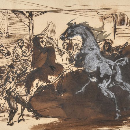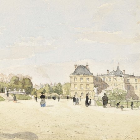 Naturalized as a French citizen in 1805, Sablet settled in Nantes where, with the help of the architect Mathurin Crucy, he rapidly was viewed with great esteem and was able to constitute a loyal clientele of ship builders and owners, artists, and distinguished men who solicited his talents as a portraitst. Many of these portraits, often in a small format, are conserved in the Museum of Fine Arts in Nantes. Sablet also painted many landscapes and, in 1812, received a commission from the city of Nantes to decorate the Stock Exchange with six paintings in grisaille which imitated low relief sculpture and depicted various scenes of Napoleon’s stay in that city.