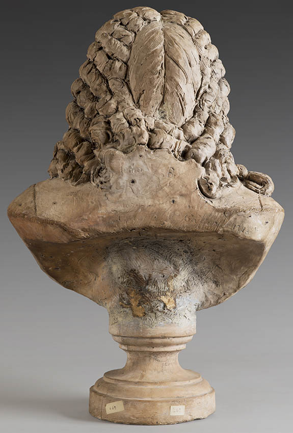 Other versions preceded the Comédie Française marble which was replicated many times. A second terracotta, neither signed nor dated, is conserved in Versailles (Gift of M. Souffrice, entered collections in 1960). Examination of the object in person confirms that it is a 19th century work. (We would like to thank Mr. Alexandre Maral, Curator of Sculpture at the Château of Versailles, to have allowes us to examine this work.) The château also conserves a plaster bust signed and dated 1786, probably by