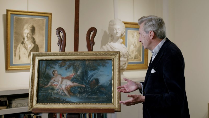 The visit continues with a pastel on vellum by François Boucher entitled La Nymphe surprise, a major rediscovery in the painter’s body of work.