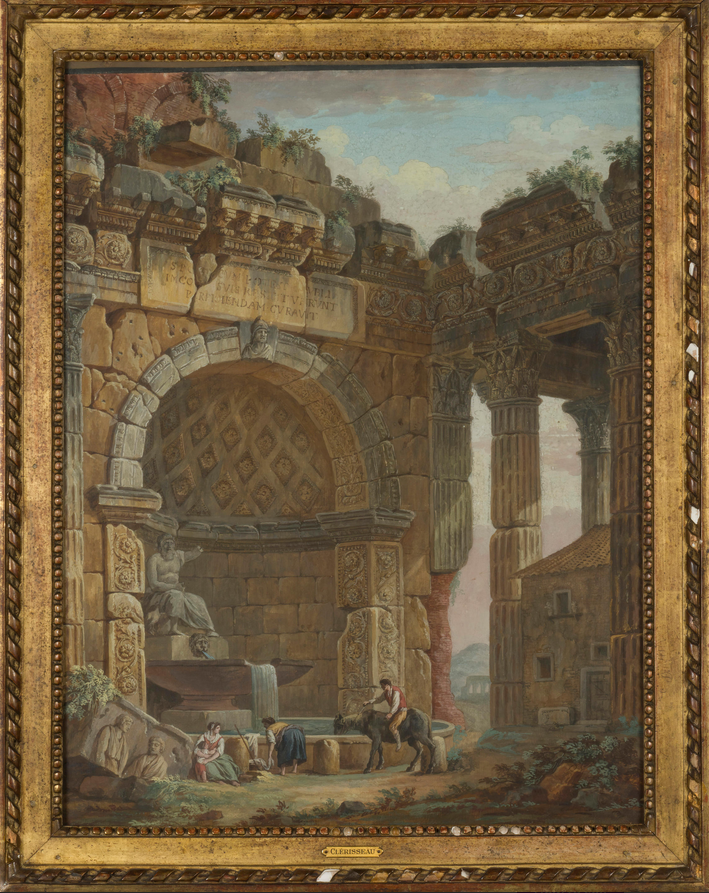Figure énigmatique de la peinture de ruines à l’aube du néoclassicisme, Charles-Louis Clérisseau conjugue ses dons de dessinateur au domaine de l’architecture dans lequel il se place comme l’un des plus renommés de sa génération. La paternité de ses œuvres a pu être confondue avec ses éminents contemporains italiens et français tels que Giovanni Paolo Panini (1691-1765) et Hubert Robert (1733-1808).