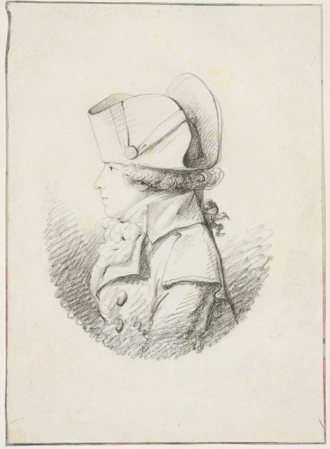 Par contraste, le vêtement est rendu avec une grande liberté. Le crayon devient onctueux, énergique. Il danse d’un bouton à l’autre, repasse dans les ombres, ralentit pour préciser l’ornement du tricorne, les boucles de la chevelure ou le liseré du col, puis accélère dans des hachures larges et croisées qui constituent le fond du portrait. Dans notre dessin, la main paraît plus sûre et déliée que dans l’Autoportrait du Louvre qui pourrait être une réplique autographe d’une œuvre non localisée. En revanche, le portrait de Sarrette s’avère si proche que l’on peut logiquement supposer une réalisation concomitante avec notre profil. Il s’agit ici sans aucun doute d’un ami proche d’Isabey, peut-être d’un élève de David, mais en tout cas d’un jeune homme vivant intensément les transformations de la Révolution et désirant faire partie du renouveau artistique.