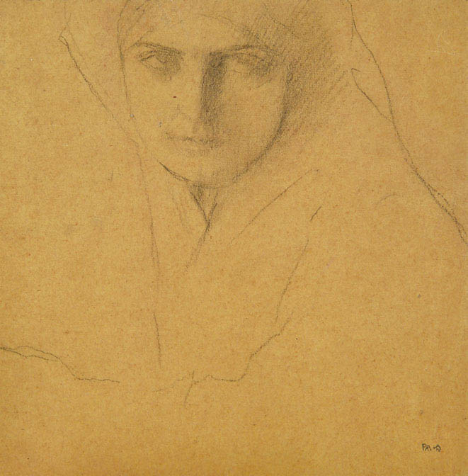 Alors que le personnage semble simplement esquissé, l’artiste attache une attention notable au visage de la religieuse. Son regard, dirigé vers les cieux, est empli de contemplation et de ferveur. Le cadrage, coupé dans sa partie supérieure, permet d’accentuer ce regard des plus intense. Cette attitude évoque deux toiles réalisées la même année (1885) par l’artiste : « La Vierge au rabot » conservée à la Pinacothèque de Munich ou encore « La Vierge à la Rose » (fig. 1) au Metropolitan Museum of Art de New York.