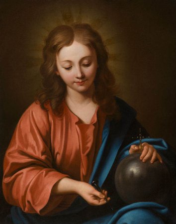Le thème fut également développé par Reni dans plusieurs peintures connues par les gravures, ainsi que le petit cuivre offert par l’artiste au pape Paul V vers 1606-1607. Cette fois, Marie tient son fils sur les genoux et Saint Jean est accompagné d’un agneau semblable à celui de notre dessin : à l’encre noire et au lavis gris, il est manifestement rajouté postérieurement à la réalisation du croquis et en même temps que l’ombre portée de la croix du Baptiste et quelques touches de lavis gris dans la figure de la Vierge. L’artiste semble se ressouvenir de notre composition aussi tardivement que dans les années 1640 : sa grande Vierge à l’Enfant avec Saint Jean Baptiste conservée au J. Paul Getty Museum reprend ainsi l’organisation pyramidale du groupe de personnages, le drapé et l’idée d’un intérieur sombre s’ouvrant à droite sur la figure de Joseph.