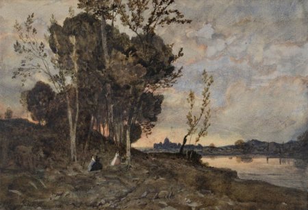Ce n’est qu’à l’âge de vingt-sept ans qu’Henri Joseph Harpignies embrassa la carrière d’artiste et entra dans l’atelier du peintre paysagiste Jean Alexis Achard. Sur les conseils de ce dernier, Harpignies entreprit en 1850 un voyage à Rome ; des paysages italiens naquit sa conviction de la primauté de la structure sur la couleur : « J’aimais la forme, elle existe là par excellence comme partout dans la campagne romaine ; c’est là que je l’ai bien comprise, et elle a été mon guide pendant toute ma carrière ».