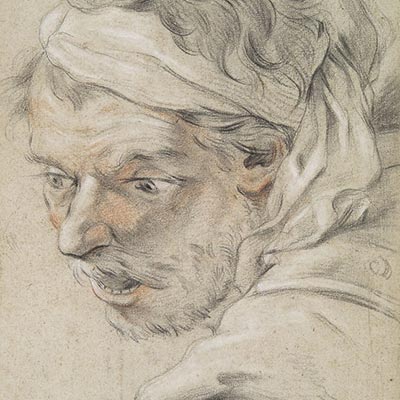 Au cours des siècles, plusieurs portraits du même type ont été présumés être du Duc de Penthièvre et attribués à divers Van Loo ; ils sont apparus dans des collections publiques et privées, ainsi que dans les ventes. Il y a une certaine ressemblance entre certaines de ces images et notre esquisse, surtout avec une gravure par Le Beau (BNF). Si dans le drapé rouge, on peut déceler des touches comparables à son Diderot de 1767, les modèles entourés d’un tel drapé rouge flamboyant virevoltant autour du corps apparaissent plutôt vers 1730. Ils sont particulièrement présents dans les portraits produits lors du séjour en Espagne au milieu des années 1740 quand le Duc de Penthièvre avait plus ou moins vingt ans. Or le modèle dans cette esquisse est déjà un homme bien plus mature. Le Duc de Penthièvre a bien reçu le Toison d’Or en 1740 et a été promu à l’Ordre de Saint Esprit en 1742, années qui coïncident avec la datation probable de ce portrait, mais nous ignorons s’il est allé en Espagne à cette époque.