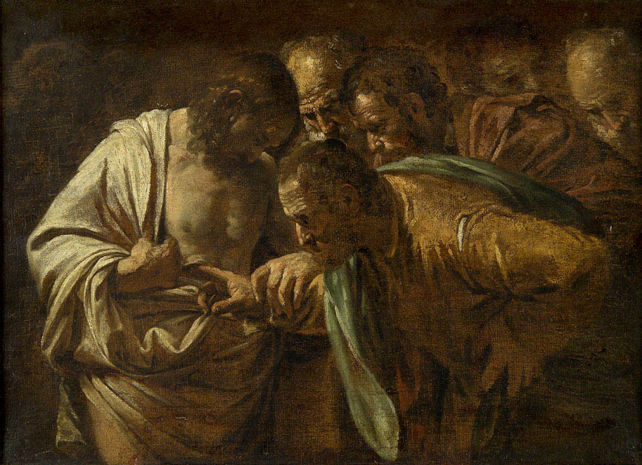 à Thomas : « Porte ton doigt ici : voici mes mains, avance ta main et mets la dans mon côté, et ne sois plus incrédule mais croyant ». Elle s’inscrit dans les recherches luministes des peintres vénitiens de ce début de XVIIe siècle ; recherches dont Le Caravage, dans sa manière de traiter les figures par la lumière en clair‑obscur reste le maître incontesté.