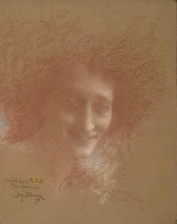 Osbert travaillait depuis le modèle vivant, évoquant ici la douceur des traits de sa fille par des coloris pastel entre le camaïeu de parme et de bleu, couleur omniprésente dans son oeuvre. Comme quelques-uns de ses contemporains dont son ami Alexandre Séon (1855-1917), Osbert développe et applique son propre symbolisme des couleurs, ne travaillant que les couleurs qui lui permettent d’exprimer ses émotions intérieures espérant ainsi toucher l’âme du spectateur. Le bleu, considéré comme la couleur la plus profonde est symbole de mélancolie, le blanc celui de la pureté utilisé ici pour incarner l’innocence et la jeunesse de sa fille, et le vert d’espérance. Prises entre le lever ou le coucher du soleil, entre le silence et la contemplation, les oeuvres d’Osbert s’apparentent systématiquement à une Arcadie rêvée, un monde idéal ignorant tout