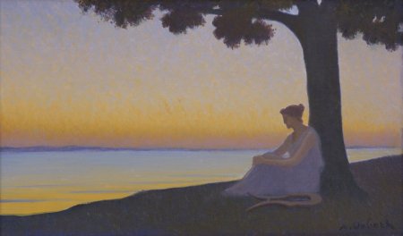 Formé par Henri Lehmann aux Beaux-Arts, Alphonse Osbert ne suit pourtant pas les conseils de son maître lorsqu’il s’agit de suivre la voie tracée par Léon Bonnat. En gagnant l’Espagne, le jeune peintre trouve l’inspiration chez les maîtres anciens tels que Velasquez et Ribera qu’il copie assidument, notamment dans le rendu de la puissance des anatomies. Au-delà de ces observations, ce voyage se révèlera bien plus enrichissant encore : il lui dévoilera la lumière. C’est en travaillant le rapport de la lumière à la spiritualité́ qu’Osbert trouve réellement sa voie et se place indéniablement comme l’un des pionniers de la peinture symboliste. L’année 1892 marque le début de son triomphe. Reconnu et soutenu par les critiques, l’artiste développe progressivement sa propre conception poétique du paysage, comme moyen d’exprimer la douceur de la nature et le repos des âmes. Sensible au silence, il immerge son travail d’un effet mystérieux, dont les ciels, calmes et apaisants évoquent, à travers l’image d’un moment suspendu, une certaine nostalgie.