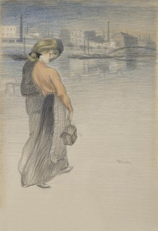 Notre tableau appartient à la série d’œuvres inspirées par l’engagement de l’artiste auprès des anarchistes et des socialistes. Suivant l’idée saint-simonienne de l’art au service des humbles, Steinlen réalisa de nombreux dessins et tableaux les représentant les gens simples, comme ici, les ouvriers sortant de leur usine après une journée de travail.