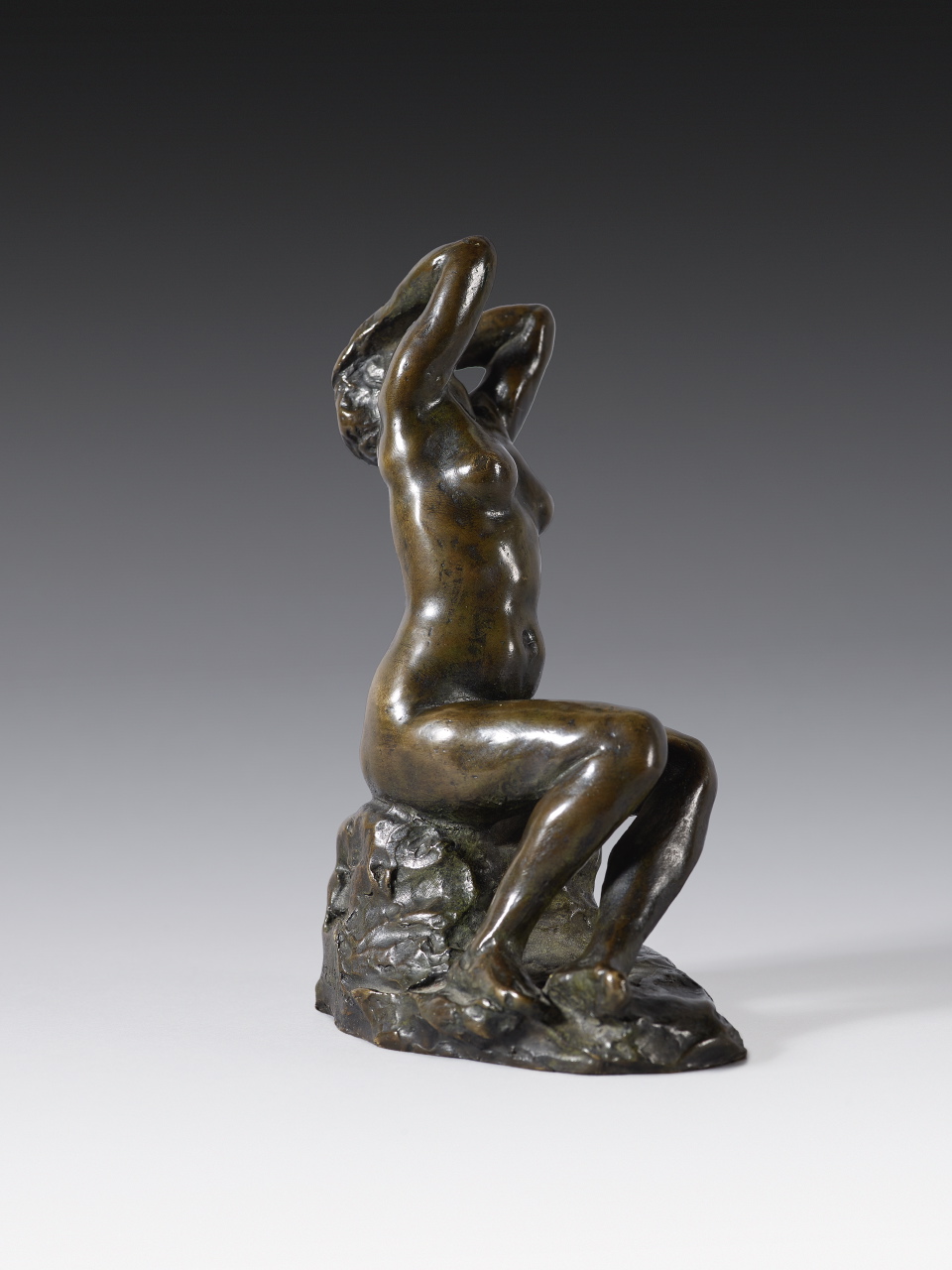 A côté de l’image de la jeune mère, très appréciée de ses commanditaires anglais, la femme nue est l’un des sujets de prédilection de Dalou. Il le développa au travers de nombreuses petites études en ronde-bosse, au modelé vigoureux, qu’il n’exposa ni n’édita de son vivant. Semblant les avoir menées pour son seul plaisir, Dalou les conserva dans son atelier, puisant parfois dans ce charmant répertoire de formes pour l’élaboration de ses monuments.