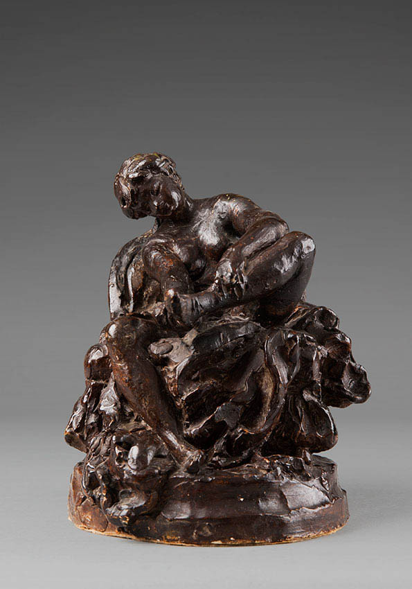 La femme nue est en effet l’un des sujets de prédilection de Dalou, et les baigneuses constituent l’un des principaux sous-ensembles de son œuvre. Par leur statut d’études, immédiates et vibrantes, ces petites ronde-bosse ne quittèrent pas l’atelier du sculpteur. Jamais exposées ni éditées de son vivant, elles semblent avoir été menées pour le seul plaisir de l’artiste, vaste et charmant répertoire de formes jalousement conservé.
