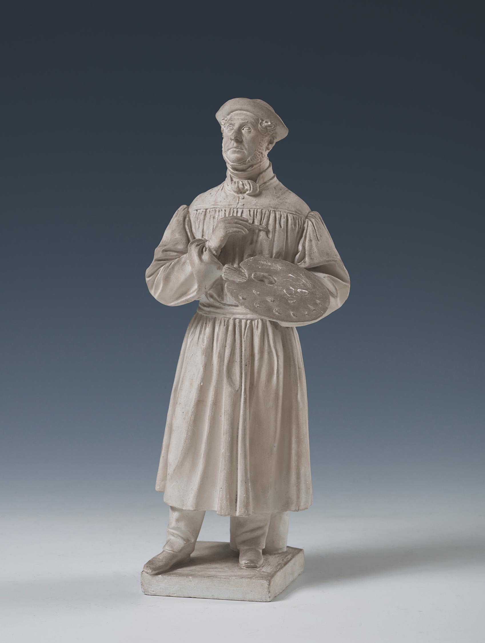 Le groupe le plus important est conservé au musée du Castelvecchio de Vérone, soit onze statuettes, restaurées en 1990-1992 peu après leur redécouverte dans les réserves. Toutes mesurent une quarantaine de centimètres de hauteur et presque toutes sont pourvues d’un piédestal portant le nom du modèle, mais les similitudes s’arrêtent là. Car chacune se présente comme un monument en miniature – à l’exact opposé des portraits-charges de Jean-Pierre Dantan le Jeune – et possède une présentation propre. Les artistes sont majoritaires, tous représentés en train de choisir quelque sujet à peindre ou à réfléchir à leur œuvre, mais dans des poses les plus variées, assis ou debout, portant veste et haut-de-forme ou vêtus d’une simple robe de chambre : l’émailleur Pietro Bagatti Valsecchi, Massimo Taparelli d’Azeglio, Friedrich von Amerling, Giovanni Migliara, Giusemppe Canella et, enfin, Francesco Hayez, le modèle de notre sculpture.